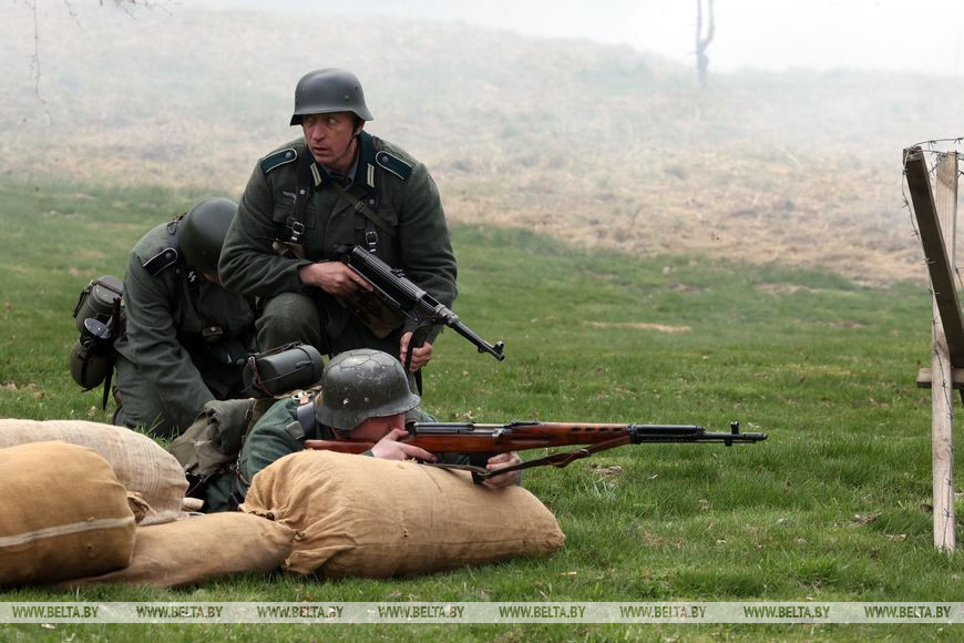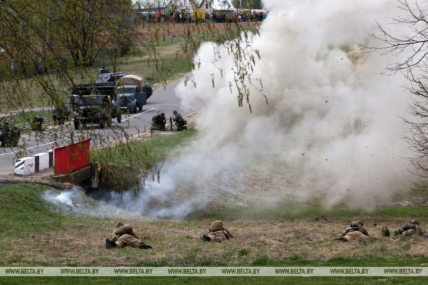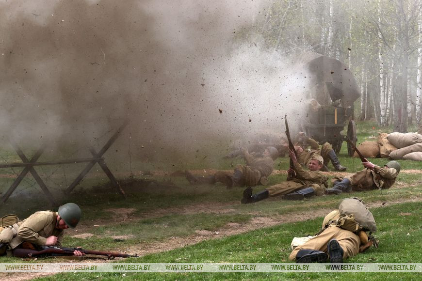 "Люди в погонах самоотверженно обороняли город, реконструкция сделана в память об этих героических событиях. До сегодняшнего дня они никогда не освещались в таком формате и на таком знаковом с исторической точки зрения участке обороны Могилева. Здесь культовое место с установленным памятником, на прилегающей территории к которому до сих пор находят погибших бойцов. Они лежат буквально в 50 м от мемориала. Поэтому место выбрано не случайно. Стоит помнить, что страницы военной белорусской истории также содержат сведения о подвигах различных служб и ведомств, которые вместе с военными внесли огромный вклад в Великую Победу. И этот акцент прослеживается в концепции всей реконструкции", - отметил Владимир Колот.