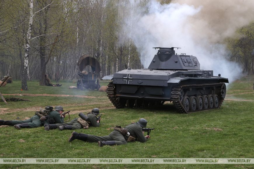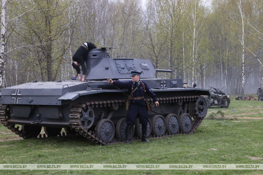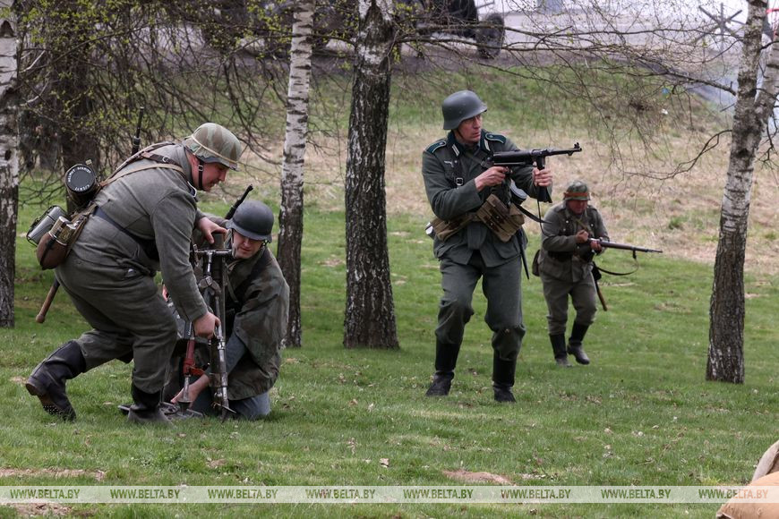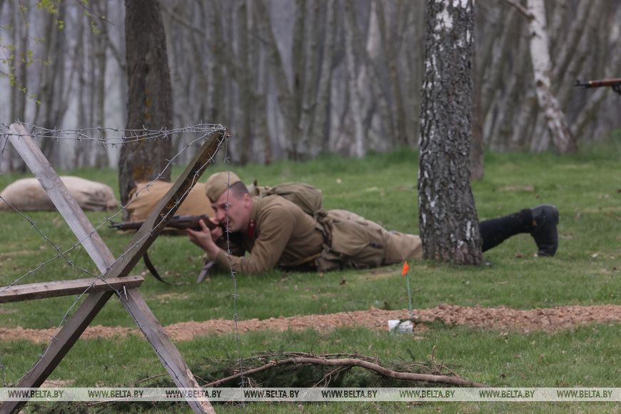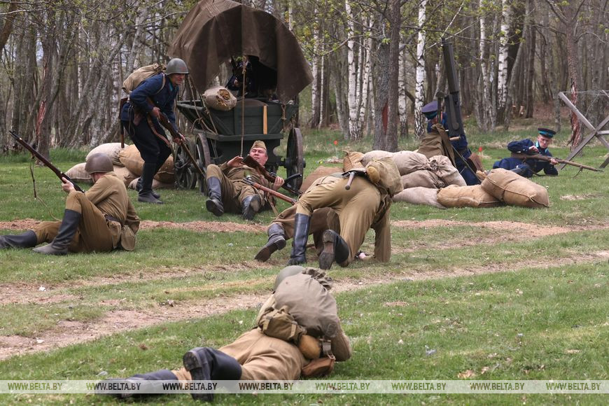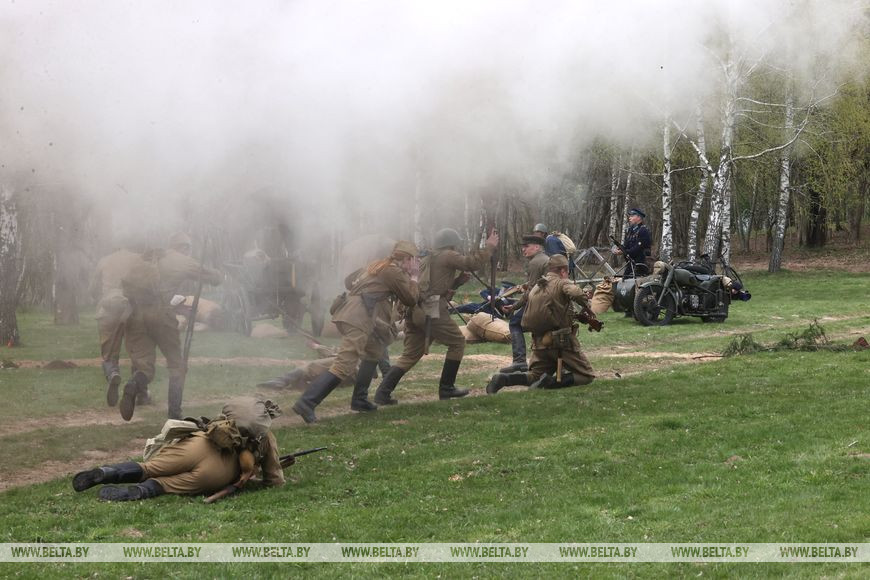 7 мая, Могилев /Корр. БЕЛТА/. Ожесточенные сражения на земле и в воздухе, порядка 100 участников и настоящая боевая техника - масштабная военно-историческая реконструкция последнего боя батальона милиции капитана Владимирова прошла в преддверии Дня Победы в деревне Гаи Могилевского района, передает корреспондент БЕЛТА.
