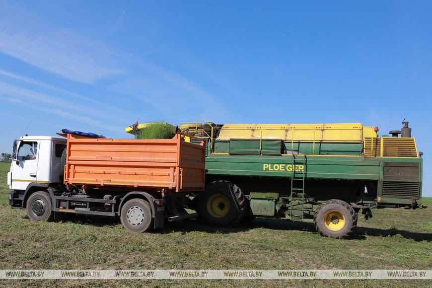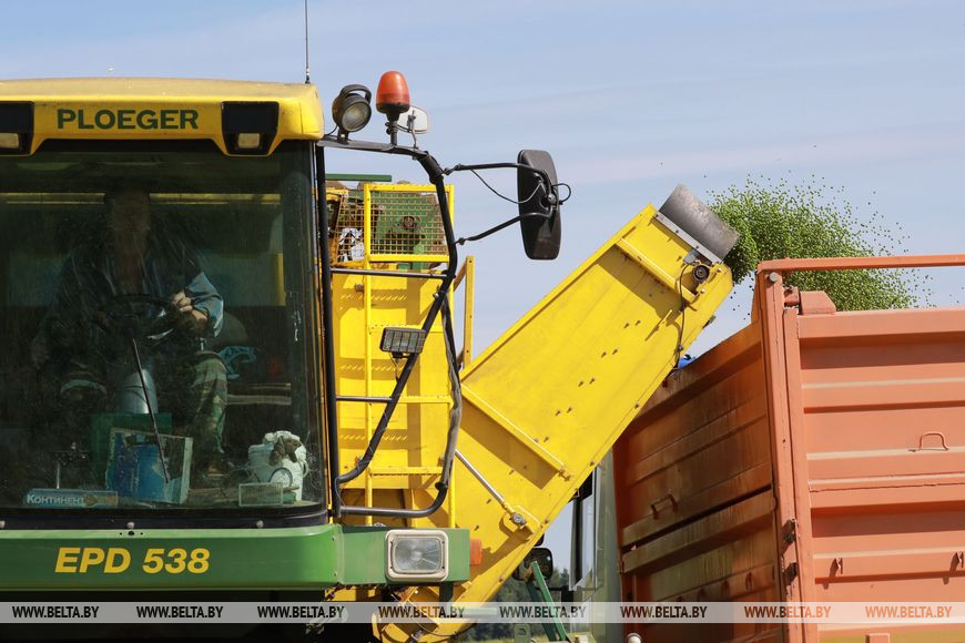 "За один день работы комбайнеры убрали 6 га и намолотили 54 т. В этом году всего посеяно 380 га. В прошлом году этот показатель был 700 га, урожай при этом составил 1 тыс. т зеленого горошка", - рассказал главный агроном.