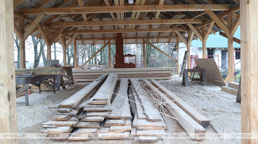 И хотя масштабные реставрационные работы внутри здания старой церкви запрещены, Милодин и отец Геннадий не отчаиваются. Дело в том, что Троицкий храм не отапливается. Когда церковь строилась в 1798 году, о вопросах комфорта думали мало, да и возможностей таких не было. В наше время в здании старой церкви службы проводят с Вербного воскресенья до Покрова, а потом переходят в здание новой церкви, которое строили уже совместно с Милодином. "Бригада у него небольшая: сосед, хлопец один и второй Вася Держак. Он раньше в Минске работал, сейчас тут живет, строитель по профессии. Он по камню идет, а Милодин больше по дереву", - объясняет отец Геннадий.