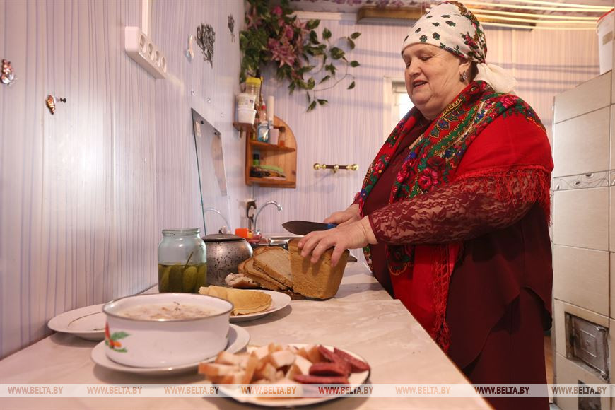 "Нельзя колядующих без угощения оставлять. Раньше к этому времени самое лучше готовили - старались свинью заколоть, сало засолить, колбасу домашнюю сделать и блинов напечь. Теперь все немного проще, но все равно хочется порадовать гостей. Они же нам добробыт на весь год несут", - поделилась хозяйка Людмила Худоченок.