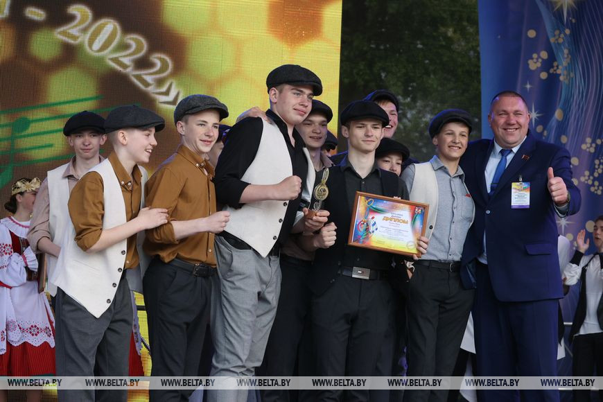 В направлении "Хореографическое искусство" главный приз фестиваля завоевал образцовый хореографический коллектив "Улыбка" Культурно-спортивного центра Могилевского отделения Белорусской железной дороги. "Мы впервые доехали до "Золотой пчелки" и очень рады, что попали на 20-й, юбилейный фестиваль, смогли показать свое творчество, - отметил Дмитрий Муравьев, который работает в должности руководителя коллектива "Улыбка" уже почти 15 лет. - Конечно же, мы волновались и переживали - каждому хочется одержать победу и увезти с собой диплом. Мы представили на суд жюри номер, который базируется на стилистике 1960-х годов, когда мальчики ходили в брюках и кепках, подражали уличному дворовому стилю. Главной темой выступления стала безответная любовь - именно эти жизненные моменты и переживания мы передали на сцене".