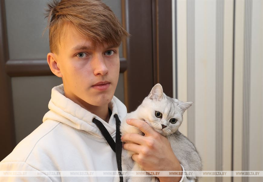 "Кот наш тоже на "А" - Айрис". Такой же красавчик, как и все у нас", - смеется Наталья. Красавчик Айрис беззвучно на мягких лапках спускается с подоконника, приветствуя вернувшегося из Гомеля Сашу. Будущий программист ответственно относится к учебе, уже готовится к выступлению на празднике ко Дню первокурсников. Будет играть на ударной установке. И это, напомним, плюс один инструмент в его творческом арсенале, кроме фортепиано, гитары и электрогитары.