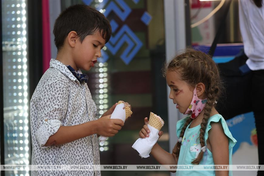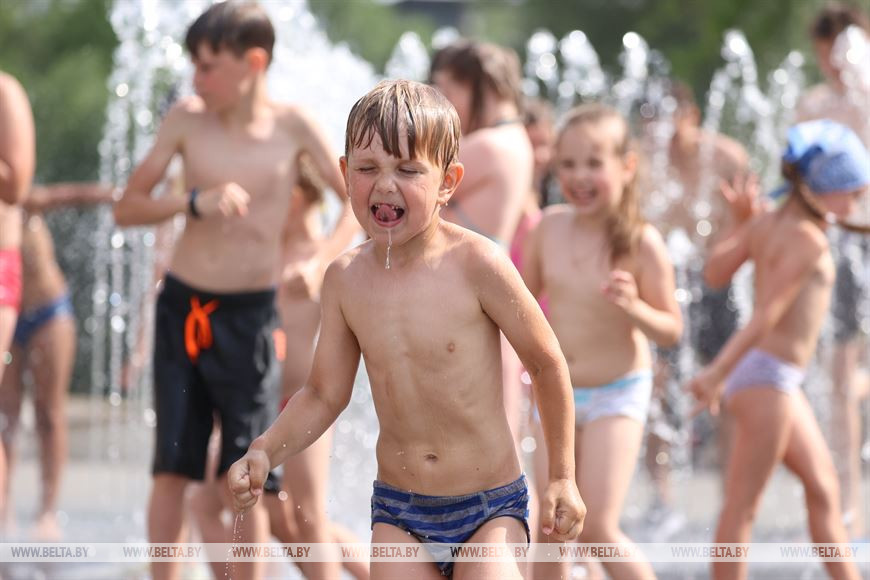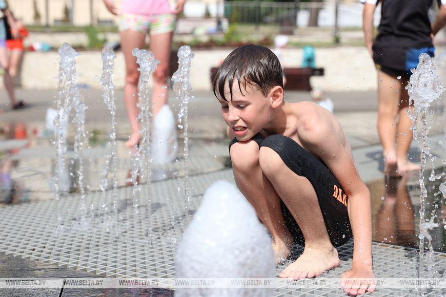 "Мы тут почти каждый день - живем недалеко и очень рады, что такой фонтан рядом сделали", - рассказывает Людмила. С мужем и уже успевшим искупаться в водных переливах 3-летним сыном Данилой они устроились в тенечке на лавочке и с удовольствием поглощают мороженое в стаканчике. На вопрос, чем спасаются от жары, женщина обводит руками вокруг себя: "Да всем, чем можно, - мороженым, водой, фонтаном. Старшие дети постоянно то на Цнянку ездят, то на море Минское. Дома тоже в ход идет все: влажные полотенца и покрывала, вентилятор, все окна настежь - для сквозняка".