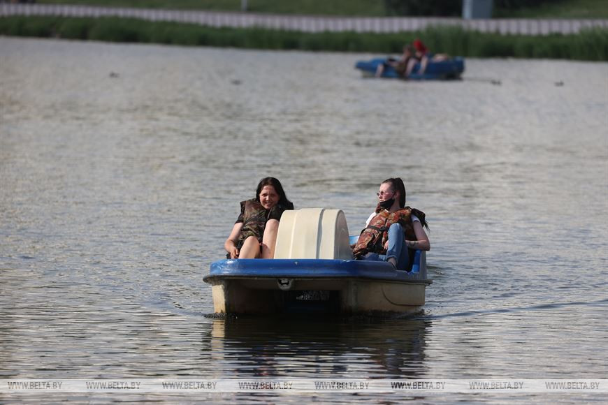 Минск, июнь, жара плюс 34. Воздух плавится над раскаленным асфальтом и плиткой, размазывая силуэты предметов и людей в причудливые картины Дали. Хочется укрыться в спасительной прохладе кондиционера и пить ледяной квас или просто воду галлонами. Но не все минчане стремятся избежать причуд белорусского лета - некоторые, наоборот, спешат насладиться курортным солнцем и находят для этого свои способы. Выбравшись из душного офиса и прогулявшись по самому солнцепеку, корреспонденты БЕЛТА увидели немало примеров, как спастись от жары, не избегая ее.