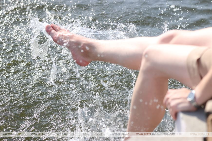 Ближе к реке гуляющих становится больше. Но от воды в эту пору бриза почти нет. И серебристая на свету поверхность манит прикоснуться, разрезать водную гладь катамаранами, рисовать ногами замысловатые каракули или просто взрывать форму воды букетами брызг, чтобы капли влаги забирали в себя больше тепла и делились прохладой. Такая вот физика жаркого лета в Минске.