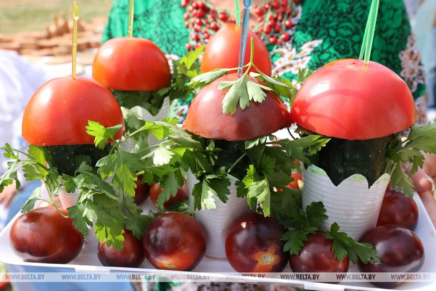 Еще одна составляющая праздника - карвинг, а также овощные поделки и композиции. Из капусты шкловчане делают зайчиков, из патиссонов - ежиков, из огурцов - причудливые кактусы, а вот из кабачков получается очень реалистичная сельхозтехника - тракторы и грузовики. На радость гостям полету фантазии участников не было предела. И не удивительно, ведь помимо презентационного есть и соревновательный момент. Так, во время праздника проходят конкурсы на самое оригинальное огуречное подворье, лучшее огуречное блюдо, самую оригинальную огуречную композицию.