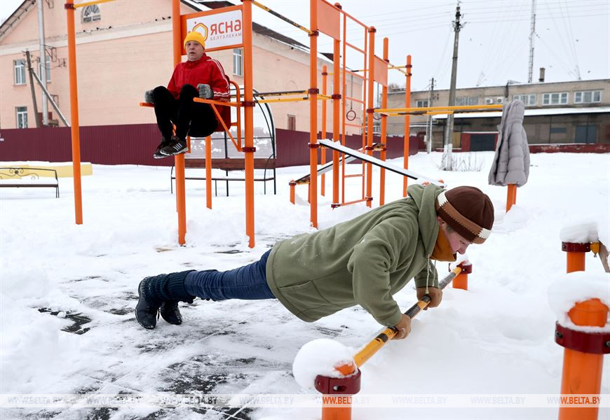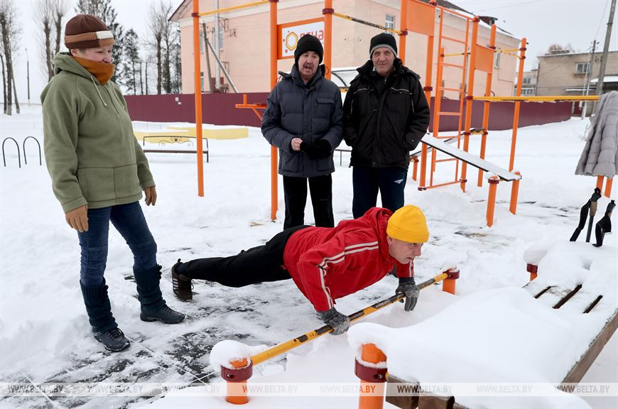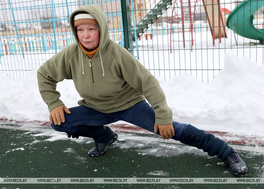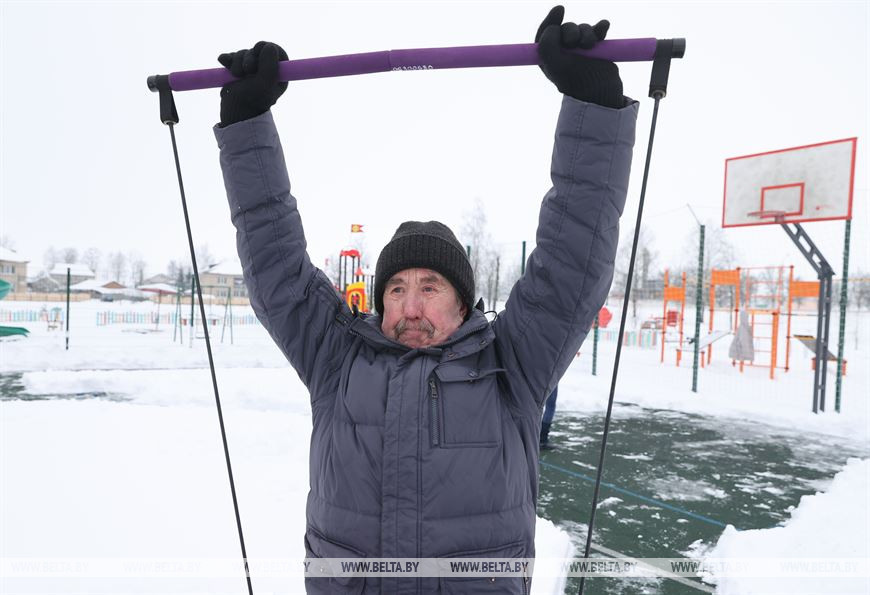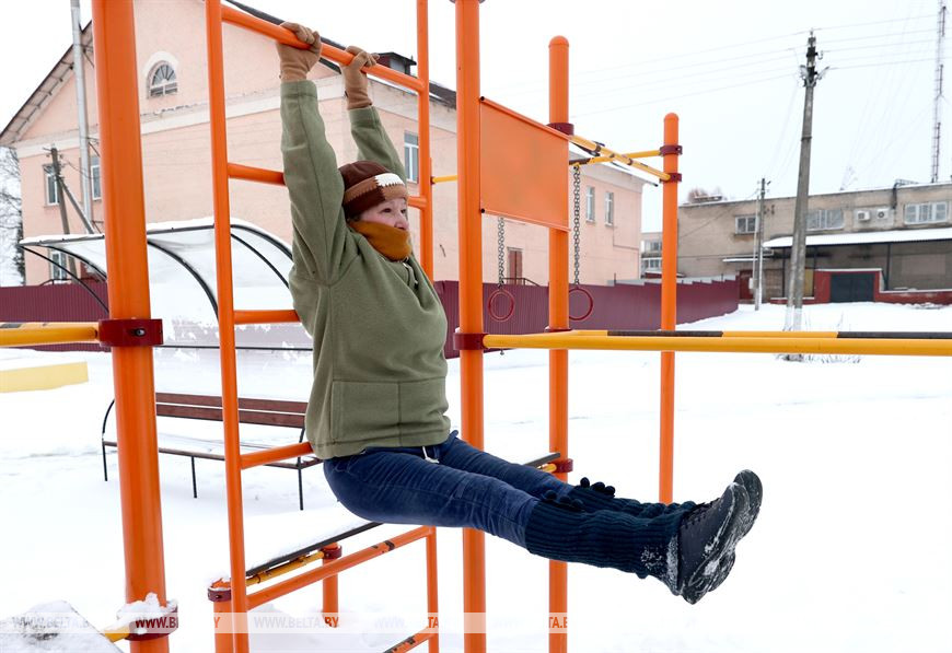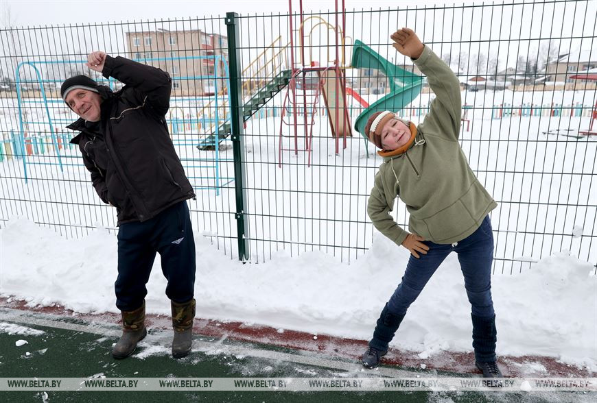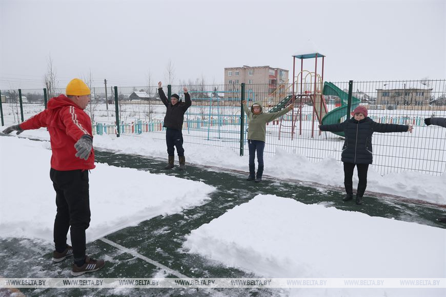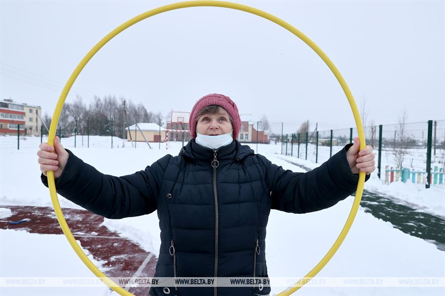 Александр Ворошень проводит разминку, а затем женщины и мужчины берут палки для скандинавской ходьбы и с резвостью, удивляющей даже инструктора, отправляются на небольшую прогулку. Зимой променад ограничивается ближайшими дорогами и тропинками, но в теплое время года активные дамы преодолевают большие дистанции. "Когда еду на автомобиле, то могу встретить наших дам в совершенно неожиданном месте далеко от агрогородка", - призналась Елена Ворошень.