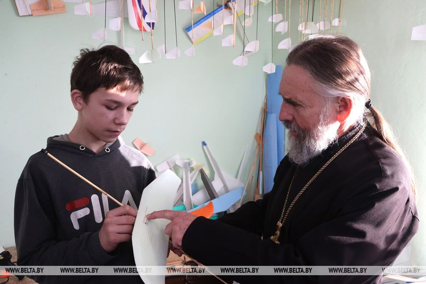 В Быхове настоятель Свято-Троицкого храма отец Николай уже 10 лет увлекает авиамоделированием воспитанников воскресной школы. Мастерская или, как ее называет сам батюшка, авиамодельная лаборатория разместилась в церковном доме прямо на территории храма. Сегодня в ней занимаются более 30 ребят. Юные авиаконструкторы не только учатся мастерить и запускать различные модели планеров, но и проходят виртуальное обучение их управлением на специальном компьютерном симуляторе. В перерывах между занятиями - разговоры о вере, патриотизме, любви к Родине и служении людям. О том, каким тонкостям создания летательных аппаратов и жизненным премудростям учит местную детвору отец Николай, - в репортаже корреспондентов БЕЛТА.