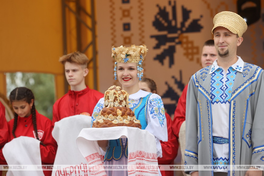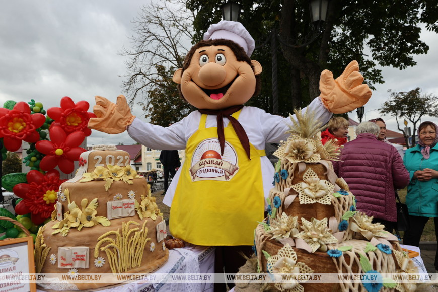 Еще в старину пришедшего в дом человека усаживали за стол и делили с ним трапезу, показывая, что и гость, и хозяин теперь не чужие друг другу - вкусившие единый хлеб. Такой же смысл носит и общий праздник аграриев в Глубоком, на котором всех потчуют хлебом, сгущенкой и богатой культурной программой. Вишневая столица Беларуси распахнула гостеприимные объятья и приняла участников сразу двух значимых событий - фестиваля-ярмарки "Дажынкі-2022" и Дня народного единства. Для тружеников села Витебской области в этом году проводят целую серию мероприятий, посвященных окончанию уборочной кампании, и масштабный праздник в Глубоком дал старт таким празднествам по всей области. Корреспонденты БЕЛТА на "Дажынках" попробовали вкус праздничного каравая и попытались определить его ингредиенты.