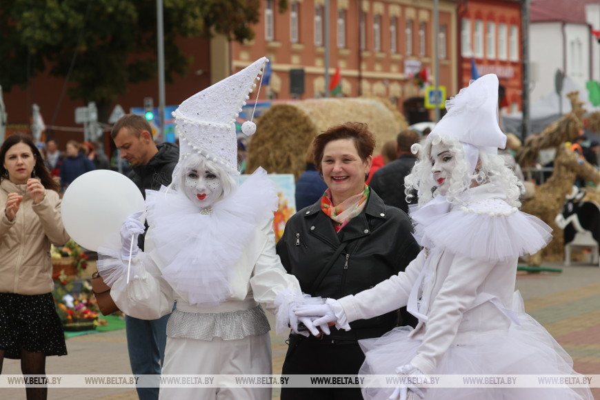 Центральная площадь Глубокого и торговые ряды, лучиками расходящиеся от нее, были заполнены овощами и фруктами всех видом, мастей и цветов. Не зря в старину конец сбора урожая знаменовал и финал года: здесь вам на "Дажынках" и новогодняя елка из яблок - и красиво, и символично, и понадкусывать можно, если проголодался.