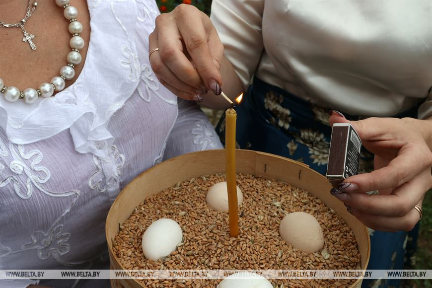 "Счастливчик съедал яйцо и надевал белую праздничную рубаху, остальные же ребята бросали яйца прямо на вспаханное поле как жертву Илье-громовержцу, чтобы земля хорошо родила, - пояснила Ирина Яковлева. - Именно главный "сейбіт" спустя время первым начинал сеять зерно под зиму, чтобы весной оно дало хорошие всходы. Однако перед тем как он начнет работу, вновь зажигали громничную свечу и читали молитву - благословение на богатый урожай. Такой обряд встречается в двух соседних агрогородках Могилевского района - Кадино и Романовичи. Несколько лет назад эту традицию вспомнила местная жительница Марфа Адамовна Ильина, которой на то время было около 90 лет".