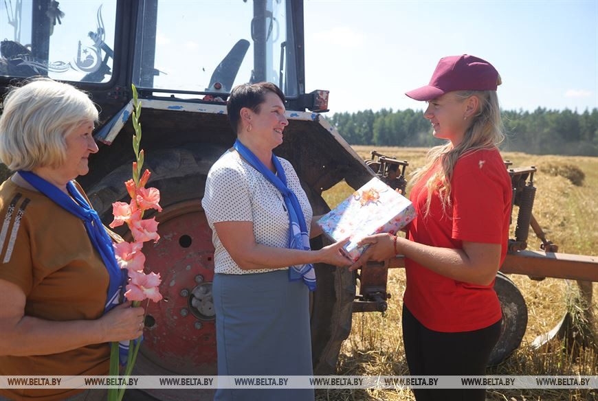 "Сразу был прицеп, потом пошли плуги, после - коса. И вот второй год я помощником комбайнера работаю", - говорит Инесса. Постепенно девушка осваивает один вид работ за другим. Ее успехи не остаются незамеченными. К слову, девушку поздравили на республиканской акции "Хлеб на ладонях женщины". "На сегодняшний день в Вороновском районе расположено восемь сельскохозяйственных предприятий. Мы приезжаем в каждое, ведь в каждом работают женщины. Они представительницы самых разных профессий: агрономы, полеводы, помощники комбайнеров, работницы зерноскладов. Это все те, кто работает над тем, чтобы вырастить, убрать и сохранить урожай. Мы не забываем о женщинах, работающих инженерами по охране труда, ведь техника безопасности тоже немаловажно. Было приятно, когда в наши ряды вступила девушка, представляющая молодежное крыло. Инесса родом из деревни Любарты, трудится в родном хозяйстве, проявляет себя в работе с крупногабаритной техникой", - сказала председатель Вороновского районного ОО "Белорусский союз женщин" Елена Ястремская.