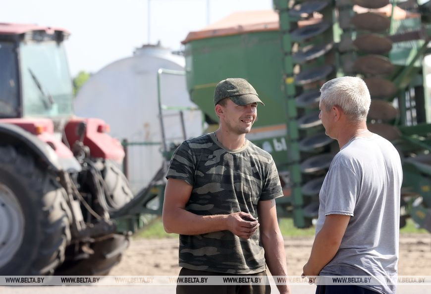 Уверенно чувствует себя в команде предприятия Дмитрий Бышик. Сначала он окончил Полесский колледж в Калинковичах, получил специальность агронома. Затем от хозяйства по целевому направлению отучился в сельскохозяйственной академии в Горках. Вернулся - и сразу призвали на службу в армию. На предприятии дождались, сохранили место за ним. Через год армейскую форму сменил на экипировку хозяйства. "Самое главное в нашем деле - получить хороший урожай. Нас на предприятии три агронома, все решения принимаем совместно, утверждает все директор. Важно соблюсти баланс при внесении удобрений и системы защиты. Стараемся все по срокам посеять и внести, по оптимальным нормам. Обновляем семенной фонд. В основном сеем собственными семенами, при необходимости закупаем новые. И от погоды многое в нашем деле зависит. Сейчас работаем над расширением площадей под озимые рапс и ячмень. Мы уже готовы приступить к посеву озимых, внесли удобрения, все запахано", - говорит молодой агроном.