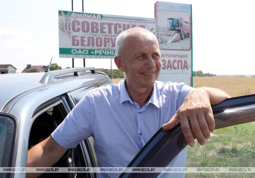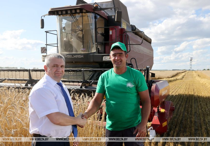 Намолотившего первую тысячу зерна на юго-востоке страны приехал поприветствовать лично и поздравить председатель Гомельского облисполкома Иван Крупко, а также представители Речицкого района. Уделили внимание и профсоюзные лидеры. Лидер жатвы в регионе от рассвета до заката работает на газовом комбайне GS4118K. Поэтому его приветствовал и генеральный директор ОАО "Гомсельмаш" Александр Новиков, где разработали и выпустили агрегат нового поколения.