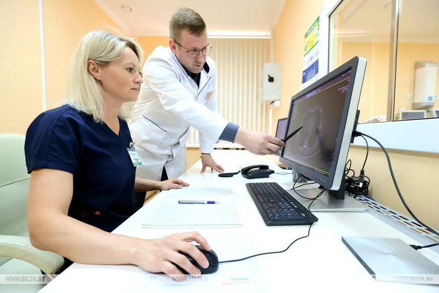 В Молодечно 15 июня открыли третий кабинет компьютерной томографии. Торжественное событие прошло в поликлинике №1 - структурном подразделении Молодечненской центральной районной больницы. Поликлиника самая большая в городе, обслуживает более 70 тыс. населения. На базе больницы №1, тоже структурного подразделения ЦРБ, располагается настоящий конгломерат диагностической и лечебной высокотехнологичной специализированной помощи региона. Корреспонденты БЕЛТА узнали, чем живет учреждение здравоохранения сегодня.