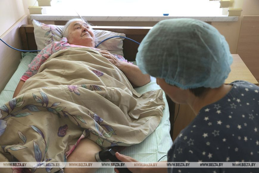 Галина Заянчковская, жительница Молодечно, - пациент травматологического отделения больницы уже восьмой день. С порога хвастается, что привезли ее сюда на коляске, а сегодня она уже может ходить с палочкой. "У меня очень больные ноги - суставы подводят, особенно коленные. При поступлении еще мучило высокое давление. Мне здесь помогли. Давление в норме, я начала ходить, врачи говорят, что со временем будет еще лучше. Каждый день получаю лечение: ставят капельницы, выполняют физиопроцедуры. А какой тут персонал! Все вежливые, приветливые. Питание отличное. Я своим приказала ко мне не ходить. Хочу побыть на больничном питании. Мне полезно, у меня сахар", - делится Галина Антоновна.