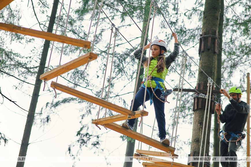 Директор ФОК Валерьян Володько вспоминает: когда увидели такой аттракцион в Гродно, подумали, что хорошо бы и для своих земляков создать подобное. Тем более "Атомстройэкспорт" (АСЭ) половину расходов из 250 тыс. российских рублей взял на себя, остальную сумму заработали сами. Сейчас веревочный городок - одно из любимых мест развлечений. На трассе испытали себя ученики всех школ города - по заявкам и бесплатно. Директор заверяет, что безопасность здесь - высочайшая: если кто-то что-то сделает не так, то, самое страшное, просто зависнет над землей.