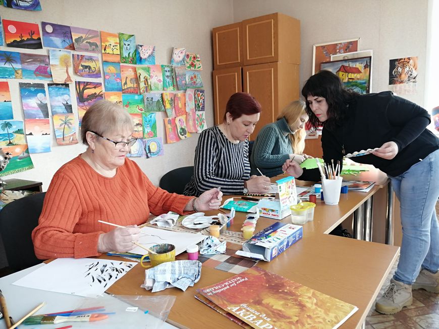 Как правило, на одном направлении они не останавливаются. Вместе с двигательными активностями посетители ОДПП занимаются и когнитивными - постигают актерское мастерство в театральной студии, рисуют. "И в спектаклях участвуем, и ходим на занятия по коррекции фигуры. Это со стороны незаметно, но забытые штаны уже налезают", - иронизируют новоиспеченные актрисы, которые уже второй год под руководством Ларисы Рябининой в театральной студии заняты в постановках. В этом году, как рассказала режиссер и сценарист, они представят на суд зрителей спектакль по еврейским мотивам, а к Новому году подготовят еще одно представление.