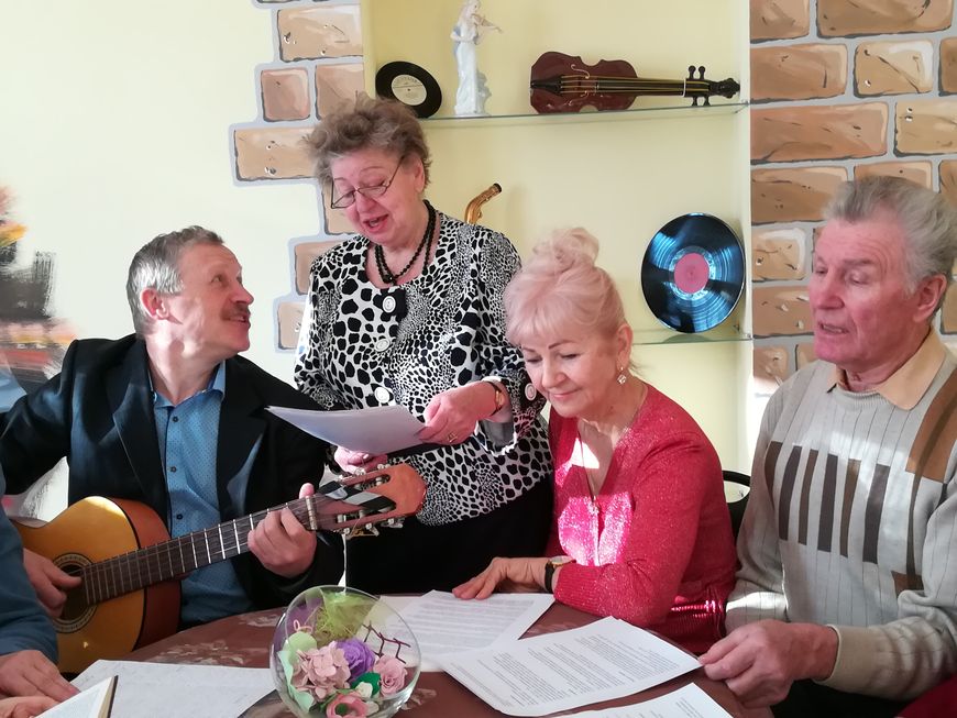 Елена Иванеева - педагог со стажем, она много лет проработала учителем труда и педагогом-организатором. Рукоделие и сценическая деятельность для нее не в новинку, но занятия в ОДПП дают ей не только бодрость тела и духа, но и душевное общение. Ее супруг хоть и не посещает отделение, но все равно помогает во всем: отвезет, куда нужно, стоит только попросить, поможет с оформлением интерьера, а еще на первом этаже отделения разместилась его и жены фотовыставка.