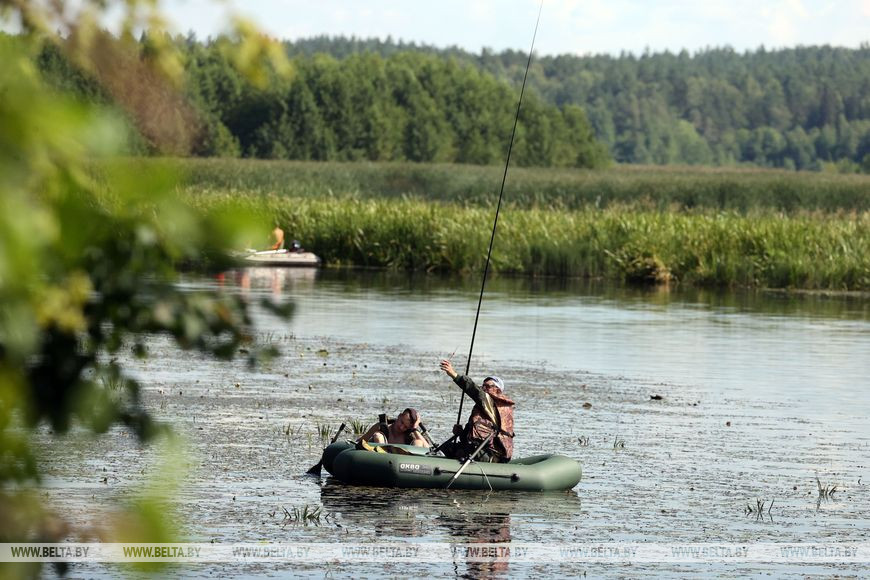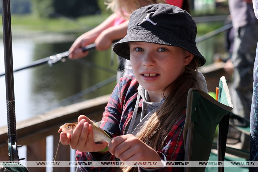 Неподалеку от исполнителей, на пирсе у воды, разместились рыбаки. Это тоже один из основных конкурсов фестиваля. Здесь профессионалы и любители соревнуются в ловле рыбы - почти 40 человек. Ловят рыбу как с пирса, так и лодок. Как отметил судья конкурса из Минска Андрей Момотюк, к ловле допускаются все желающие без возрастных ограничений. Вместе со всеми свои силы в рыболовном искусстве решили испытать двоюродные сестры Милана и Маргарита Потапенко из Бобруйска. Девочкам всего 13 и 8 лет, но они уже уверенно обращаются с удочкой. Как оказалось, в их семьях рыбалка - хобби их отцов. Среди участников рыболовного конкурса они одни из самых молодых.
