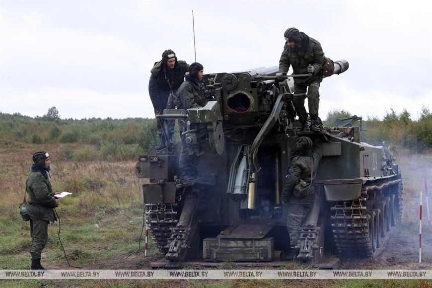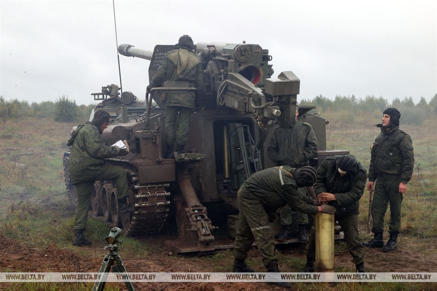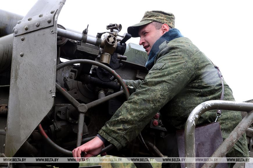 На полигоне Осиповичской 51-й гвардейской артиллерийской бригады каждые полгода проходят плановые учения. На этот раз завершающий экзамен по управлению огнем сдавали солдаты срочной службы. Они тренировали точность и однообразие стрельбы, а также учились правильно обращаться с боевым оружием - шутка ли, приручить 8-метровую и почти 30-тонную самоходную пушку 2С5 "Гиацинт С"! Корреспонденты БЕЛТА выехали на огневые позиции, чтобы вместе с военнообязанными понюхать пороха и узнать, как посвящают в артиллеристы.