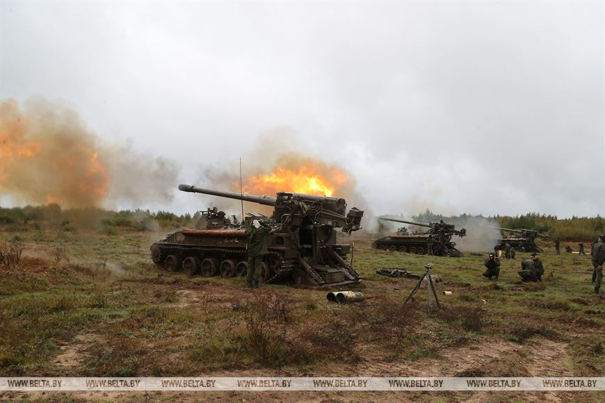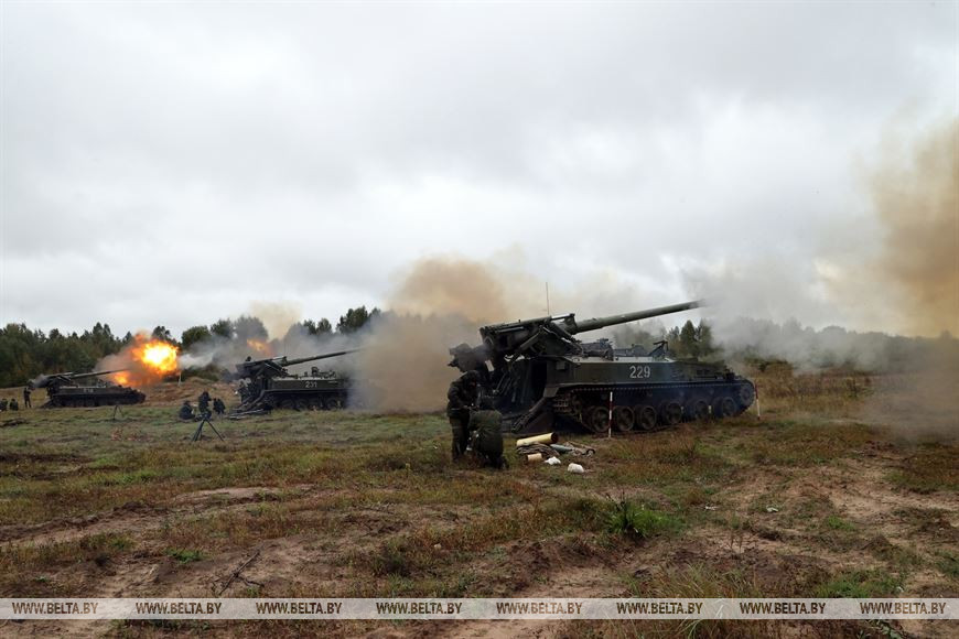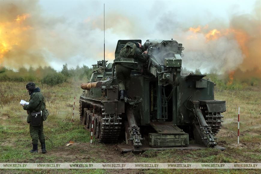 "Гиацинты" полным зарядом могут стрелять до 30 км. Конечно же, на учениях артиллеристы выбирают более близкие цели - от 4 км до 10 км. За периметр полигона, который составляет более 20 км в длину, снаряд не упадет, несмотря на то, что 2С5 - система дальнобойная. "Все безопасно как для военнослужащих, так и для жителей близлежащих деревень, - подчеркнул Виталий Прокопчик. - Соблюдение требований безопасности при проведении стрельб контролируется на каждом этапе. Во-первых, орудия наводятся только в цель, во-вторых, все расчеты неоднократно проверяются, в-третьих, на орудиях устанавливаются ограничители - специальная система, которая не позволяет выходить за рамки сектора обстрела. Этих мер достаточно, чтобы не выстрелить дальше, чем можно".