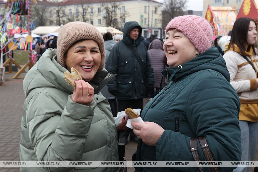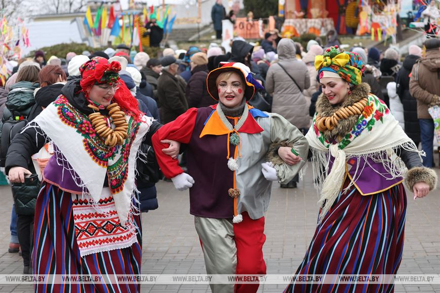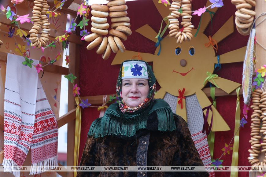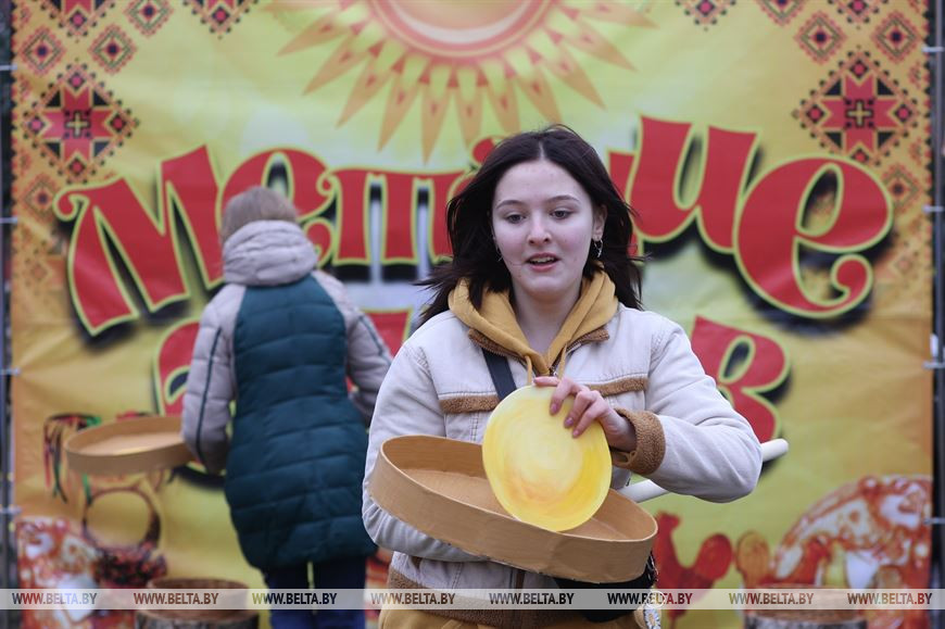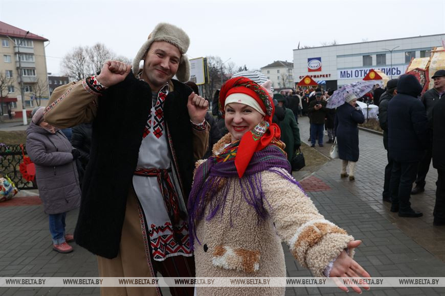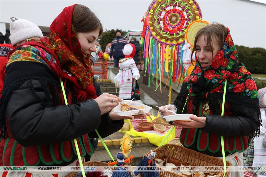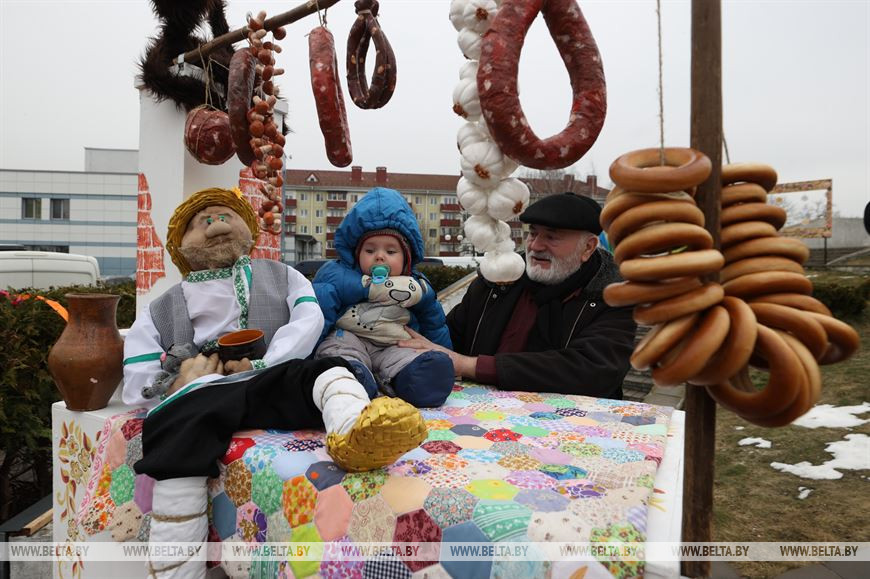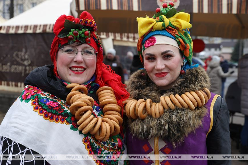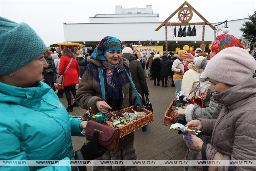 Несмотря на зимнюю сырость, площадь у Слуцкого городского дома культуры полна людей. Здесь и коробейники, и уличная торговля с традиционными угощениями и авторскими куклами, и сама Масленица. Сегодня у жителей и гостей Слуцка масленичные гуляния. Особую радость празднику добавляет открытие республиканской акции "Слуцк - культурная столица Беларуси 2023". Корреспонденты БЕЛТА приехали в гости к празднующим и прошлись по выставкам мастеров художественного творчества, продегустировали блины, травяные чаи и блюда из картофеля, а также метали валенки и увидели куклу из блинов.