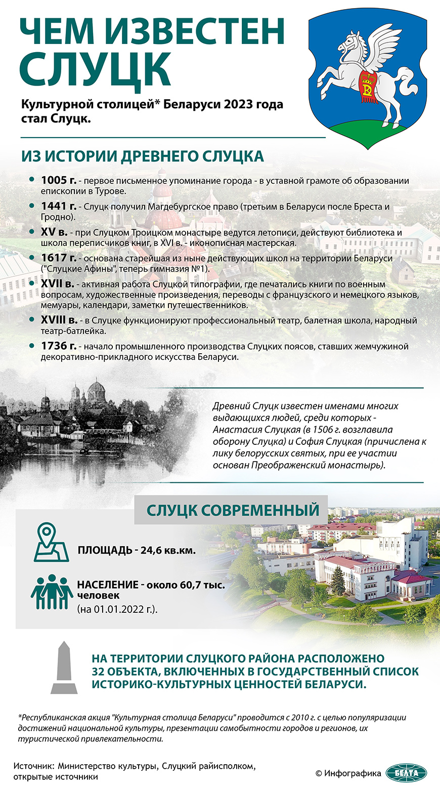 "Культура призвана служить добру, красоте, гармонии, пробуждать лучшие человеческие качества, сохранять традиции и историю. Слуцк является одним из древнейших и красивейших уголков нашей страны с неповторимыми памятниками архитектуры и удивительной атмосферой, объединяющей древнее и новое, прошлое и настоящее. Наибольшую славу и известность городу принесла Слуцкая мануфактура шелковых поясов. Каждый пояс был произведением искусства. Слуцкие пояса и сегодня являются жемчужиной декоративно-прикладного искусства Беларуси, гордостью многих музеев мира и современным брендом нашей страны. Главной достопримечательностью, безусловно, являются творческие, талантливые люди, которые создают архитектуру города, формируют атмосферу добра и созидания, через музыкальные, художественные, литературные произведения. Уверен, что 2023 год, объявленный Годом мира и созидания, позволит Слуцку еще шире продемонстрировать всем жителям страны и гостям свой творческий потенциал, открыть новые яркие звезды на ниве культуры и гордо нести звание культурной столицы Беларуси", - сказал Анатолий Маркевич, приветствуя гостей церемонии открытия.