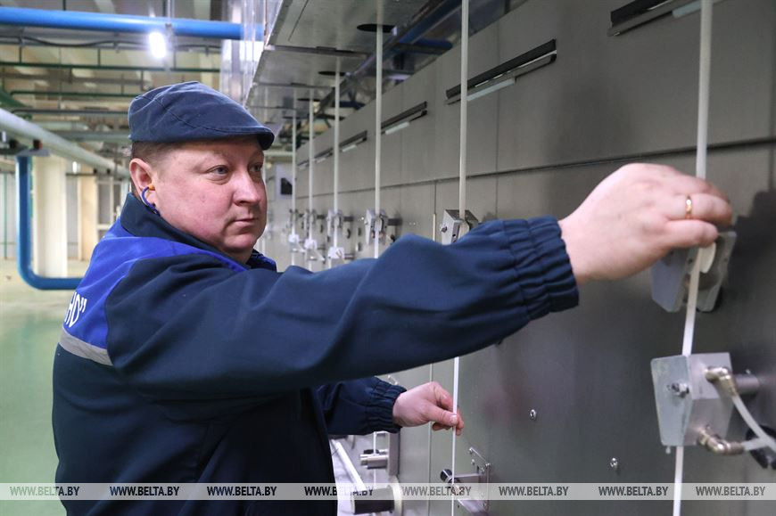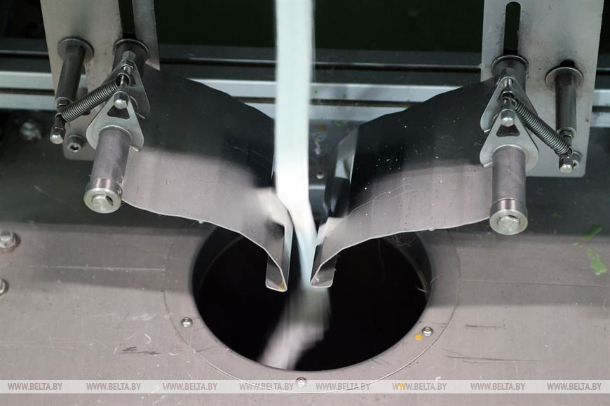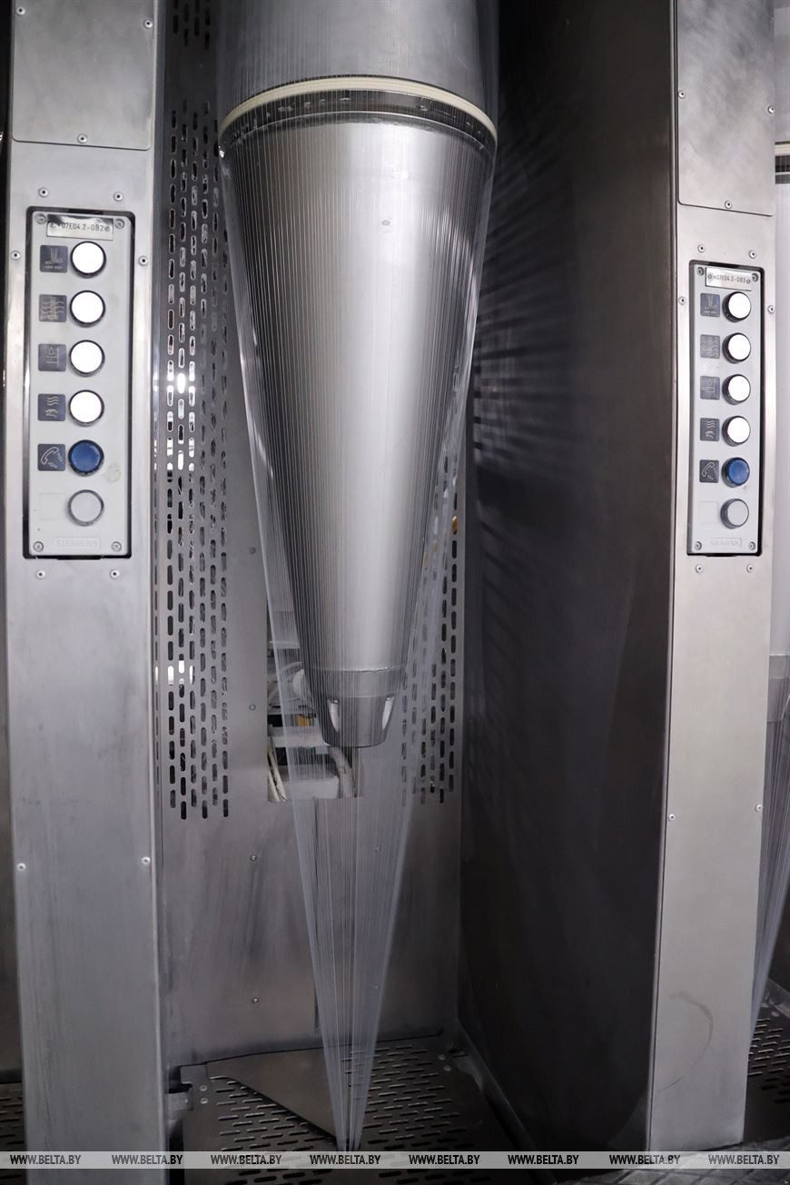 "Наше предприятие - единственное в Беларуси, где налажен выпуск конжугейта, - говорит Александр Сергеюк. - Это инновационное волокно предназначено для производств наполнителей и утеплителей. Оно упругое и полое внутри, за счет чего сохраняет тепло и форму. Неоспоримый плюс производства конжугейта - его экологичность. Мы берем расплав, охлаждаем, вытягиваем и наносим на него только замасливатель - по сути, обычное мыло. Выбросы минимальны и для людей не вредны, тем более на предприятии работают установки для очистки и обезвреживания сточных вод. На экологию здесь нагрузка минимальная. Сегодня в цеху работает 2 линии. Мощность первой составляет 2 тыс. т в месяц, вторая сейчас запущена на 60% и выйдет на полную мощность до конца этого года".
