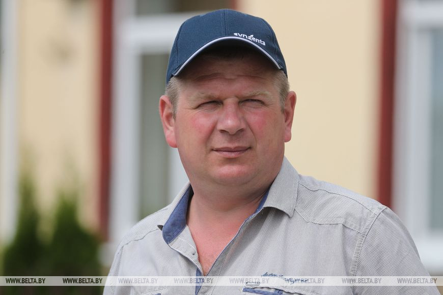 Главный агроном совхоза Большое Можейково Геннадий Коледа объясняет, что убрать цветы надо в сжатые сроки. Под ромашку отведено около 300 га. Сеют ее дважды в год - в августе и в январе-феврале, что позволяет добиться разного времени созревания.
