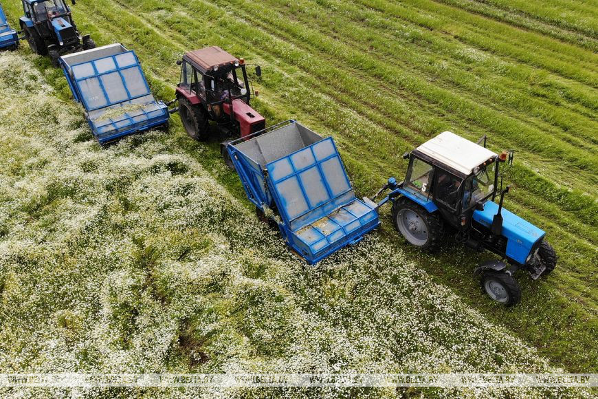 Даже в пасмурный день здесь хочется улыбаться. Под ногами целое поле ромашек, вокруг приятный цветочный аромат. Это картинка не из рекламного проспекта, а белорусский пейзаж. Локация - Щучинский район, КСУП "Совхоз Большое Можейково". Хозяйство многие годы специализируется на выращивании лекарственных трав и растений: календулы, валерьяны и ромашки. Сейчас пришла пора сбора ромашки. На одной из необычных уборочных побывали корреспонденты БЕЛТА.
