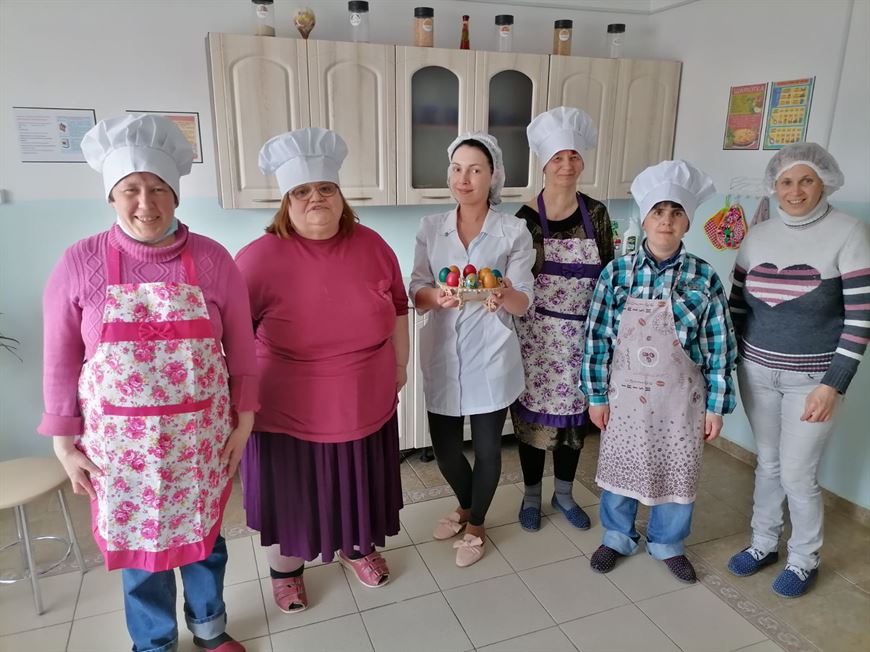 Специалист помогает жителям дома-интерната осваивать кулинарные навыки, проводит с ними в фитобаре неспешные вечера за чашечкой ароматного травяного чая. Инструктор рассказала, что ее подопечные умеют готовить практически все базовые блюда. Особый интерес у них вызвала подготовка в Пасхе, когда вареные яйца окрашивали пищевыми красителями.
