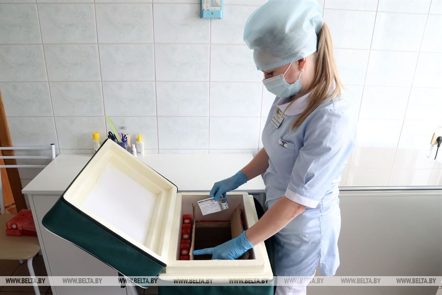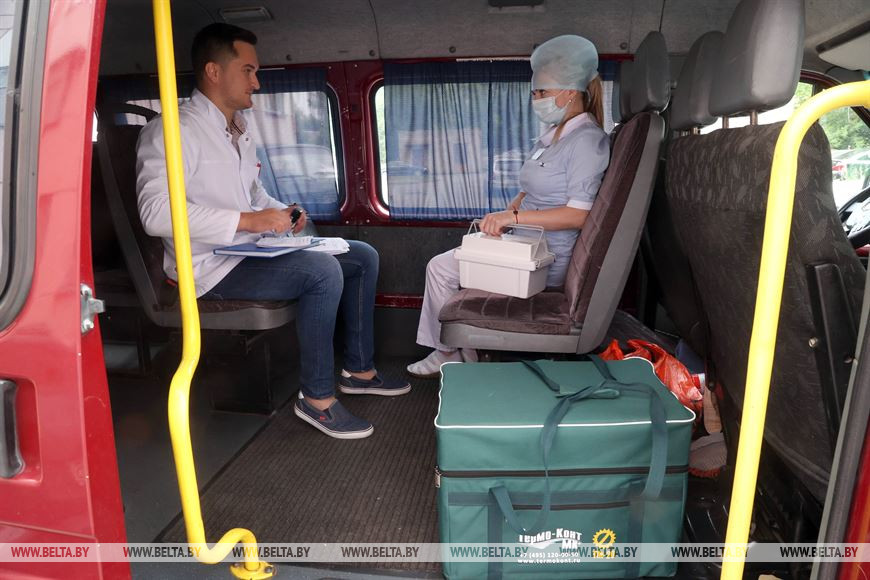 6 июля, Могилев /Юлия Евменькова - БЕЛТА/. В Могилевской области работают 198 выездных прививочных бригад. Они охватывают вакцинацией против COVID-19 самые удаленные районы региона, работников предприятий и организаций, а также пациентов, которые в силу различных причин не могут самостоятельно прийти в стационарный прививочный пункт. Вместе с одной из таких мобильных бригад выехали корреспонденты БЕЛТА, чтобы проследить весь маршрут движения вакцины - от учреждения здравоохранения к человеку.
