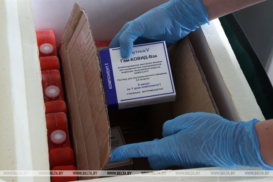 В работе выездных бригад самое трудное не доставка медперсонала до адресата, а создание условий транспортировки вакцины. Так, в Могилевской поликлинике №10 прививают препаратом белорусского розлива "Гам-КОВИД-Вак", известного как "Спутник V", который требует соблюдения определенного температурного режима: норма хранения - не выше минус 18 градусов. Именно поэтому подготовка к выезду начинается с комплектации переносных термоконтейнеров.