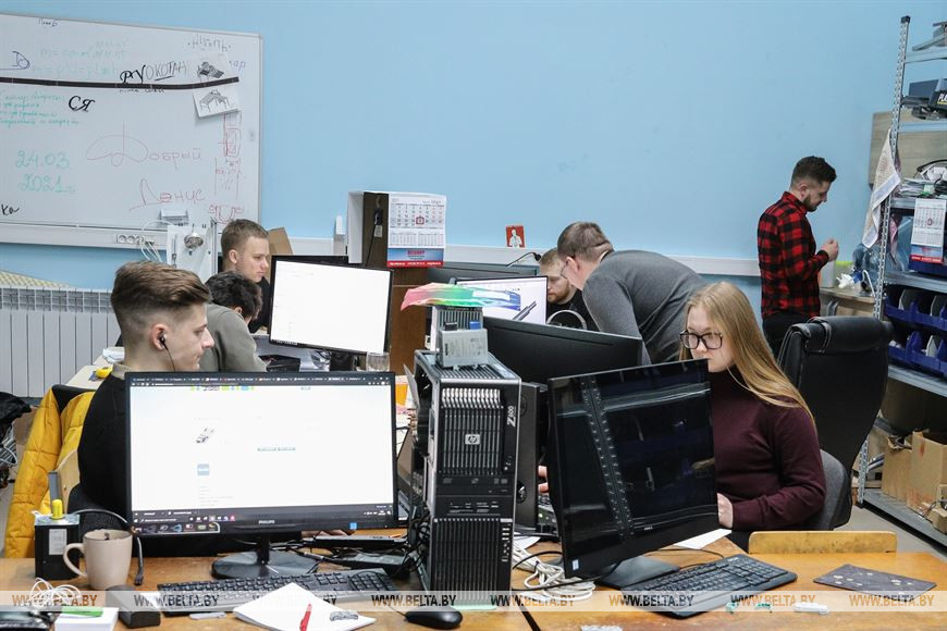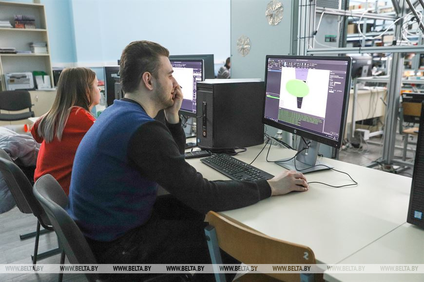 В увлеченности ребят убеждаемся лично, заглянув в лабораторию робототехники. Погрузившись в компьютеры, парни и девушки по одному или в группе трудятся над своими проектами. Какие-то из них учебные, другие делаются по заказу производственных предприятий. Молодые люди пишут программы для роботов, работают с компьютерным зрением, моделируют и конструируют различные стенды, захватные механизмы и оснастки. Например, студенты БрГТУ разработали роботов - шахматиста, бармена, шаржиста. А недавно в лаборатории появился механический массажист. Пока рельефной насадкой он может массировать руки и спину. Думается, это не окончательный набор и авторы его доукомплектуют.