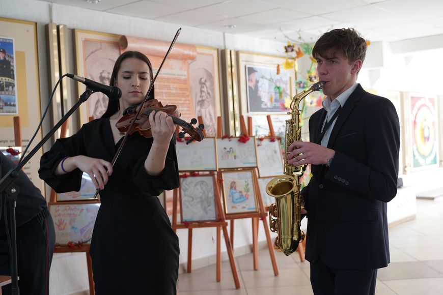 Встречали дорогих гостей в холле института с живой музыкой и настоящей выставкой тематических картин, которые рисовали курсанты. А мамы приехали не одни - с папами, бабушками, братьями и сестрами. Курсанты пока еще из-за угла, осторожно и с теплыми улыбками смотрели на родных - портить сюрприз не хотели.