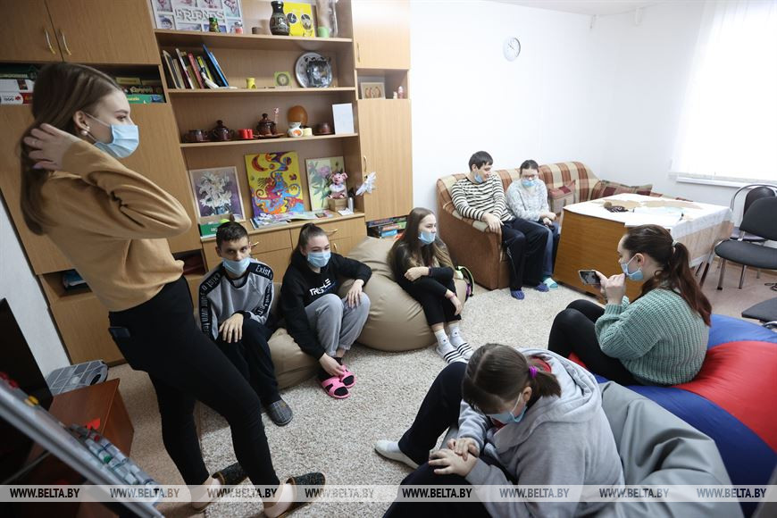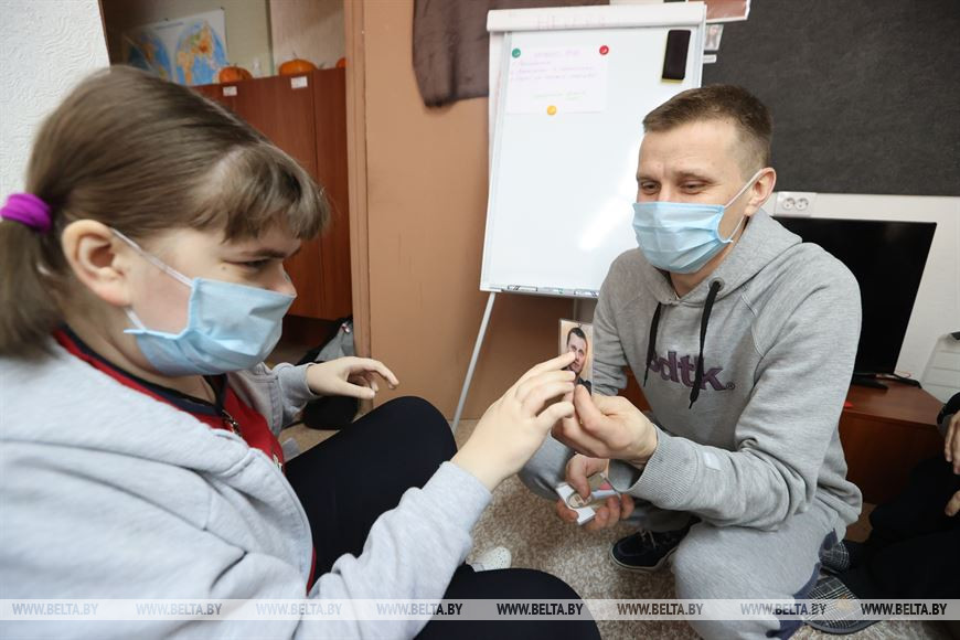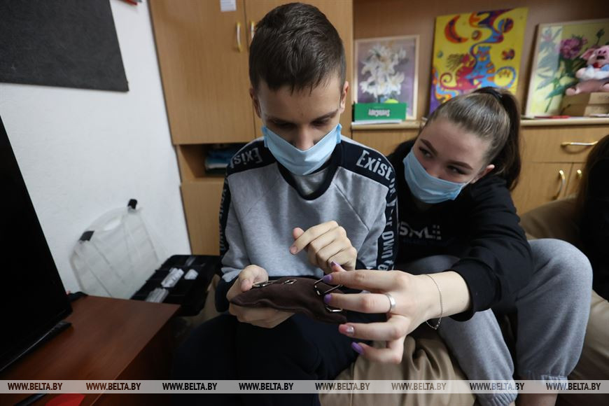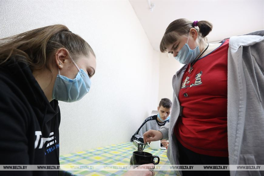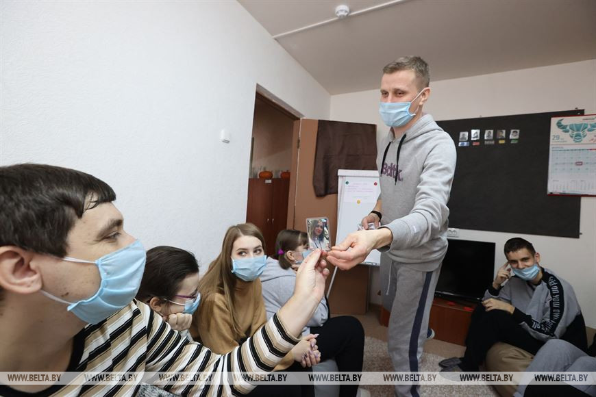 Пока мы рассуждаем о перспективах услуги, ребята уже расположились в уютном зале вместе со специалистами проекта и студентами-практикантами из Минского государственного колледжа сферы обслуживания, которые в этом году станут дипломированными социальными работниками. Специалистов проекта даже больше, чем самих подопечных. Получается, что у каждого молодого инвалида всегда рядом есть личный помощник, который не водит их за руку, не выполняют за них работу, но присматривает и дозировано помогает только там, где надо.