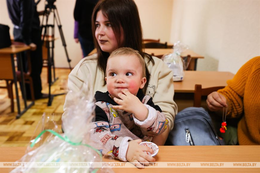 Людей, оказавшихся вдалеке от своего дома, сегодня поздравили с православной Пасхой. Сотрудники УВД привезли для украинских семей куличи, обязательно положили для детей шоколадные яйца. Представительницы Белорусского союза женщин передали денежные сертификаты, чтобы люди могли закупиться к праздничному столу.