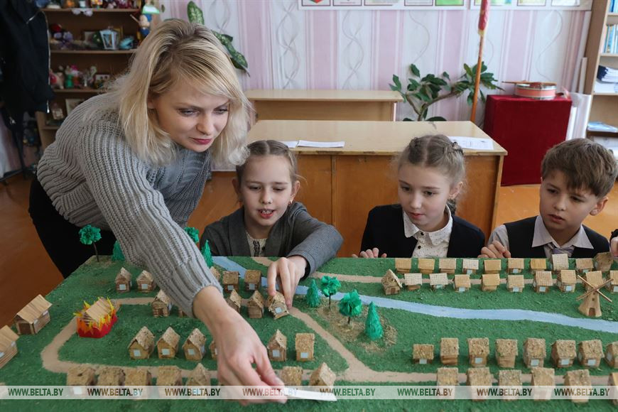 Над конкурсным проектом трудились около 10 учащихся Княжицкой школы - с 4 по 7 классы, им помогали воспитатель продленного дня Татьяна Горбунова, по специальности учитель рисования, и учитель по классу изобразительного искусства Могилевской районной детской школы искусств Юлия Воробьева. "Этот проект очень важен для меня лично: в процессе подготовки макета я как будто пережила все происходящее в то время, - делится впечатлениями Татьяна Горбунова. - До того, как приступили к работе, сделали вместе с детьми экскурс в историю, прочитали все о тех трагических событиях. Мы многое знали о войне, проходили еще в школе, но каждый раз это трогает по-новому. Поэтому макет делали с особым трепетом: прорабатывали каждый домик, каждое деревце. Здесь все, как в обычно деревне, - рассыпанные бревна, дрова, стога сена… Хотелось, чтобы другие посмотрели на проделанную работу нашими глазами".