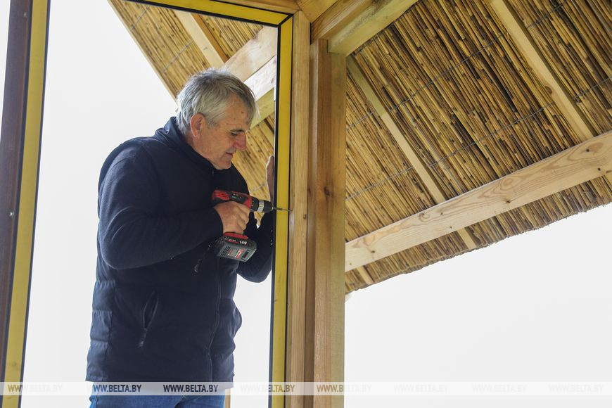 "Стены по периметру будут обустроены коробами, заполненными свежим сеном - для утепления и аромата. Оно будет обновляться. Старое сено можно будет вытряхнуть и накосить нового. Желающие смогут это сделать сами. Мы называем это дом-шалаш в современном стиле, потому что выполнен он из природных материалов: дерева, тростника и сена", - рассказывает Иван Карпук.
