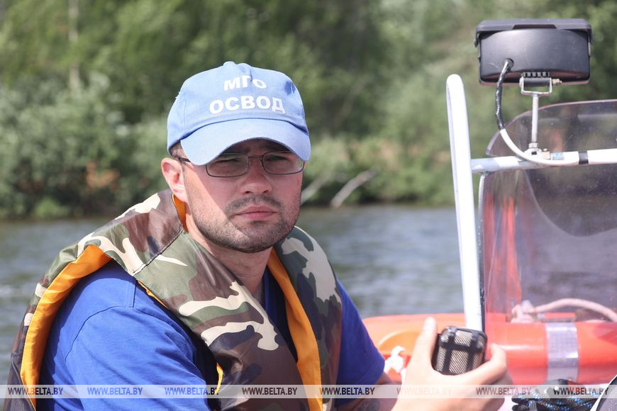 Знойная жара, шум прибоя, запах воды. Белое здание, палуба с яркими оранжевыми спасательными кругами, моторная лодка и мужчины с биноклями, внимательно наблюдающие за людьми на пляже на другой стороне водоема. Такая картина возникает перед глазами на спасательной станции ОСВОД в Дроздах. Ответственным за объект здесь закрепили начальника водолазно-спасательной службы Минской городской организации ОСВОД Дмитрия Храпкова.