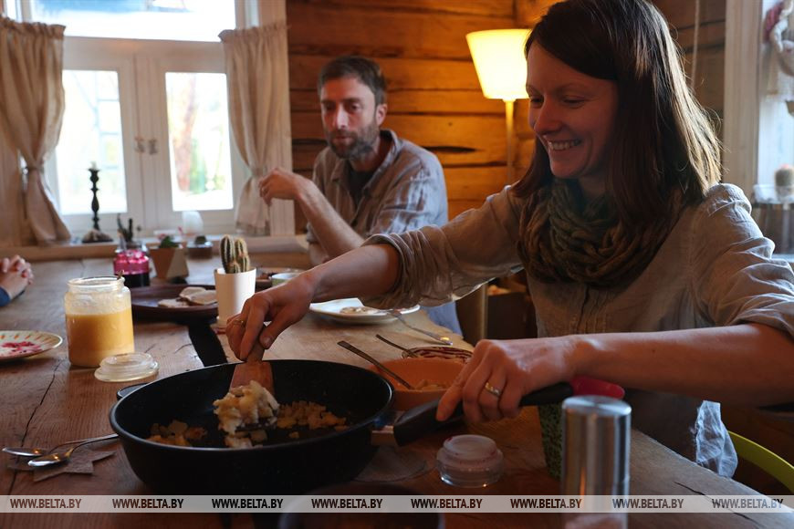 Однажды в один день к ним приехали посол Австрии в Беларуси Алоизия Вергеттер, местный лесник, айтишники, работники туристического комплекса. Все они сидели за столом и общались. "Такое сложно представить. Где эти люди еще встретились, если бы не у нас?" - размышляет австриец.