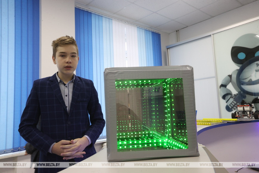 Декоративный куб Даниила Жуковца переливается огоньками, а если в него заглянуть, то можно утонуть в бесконечности.