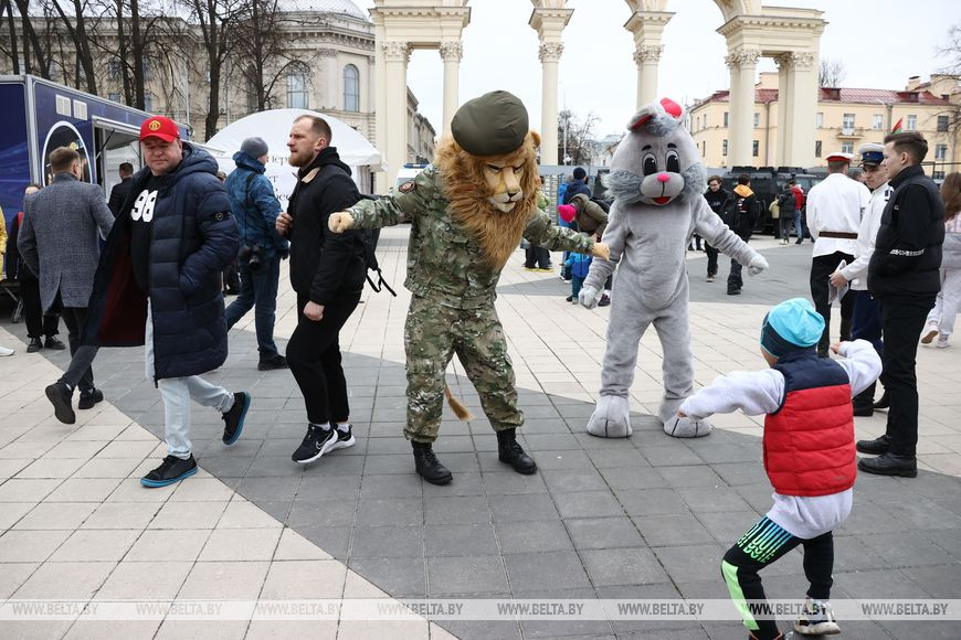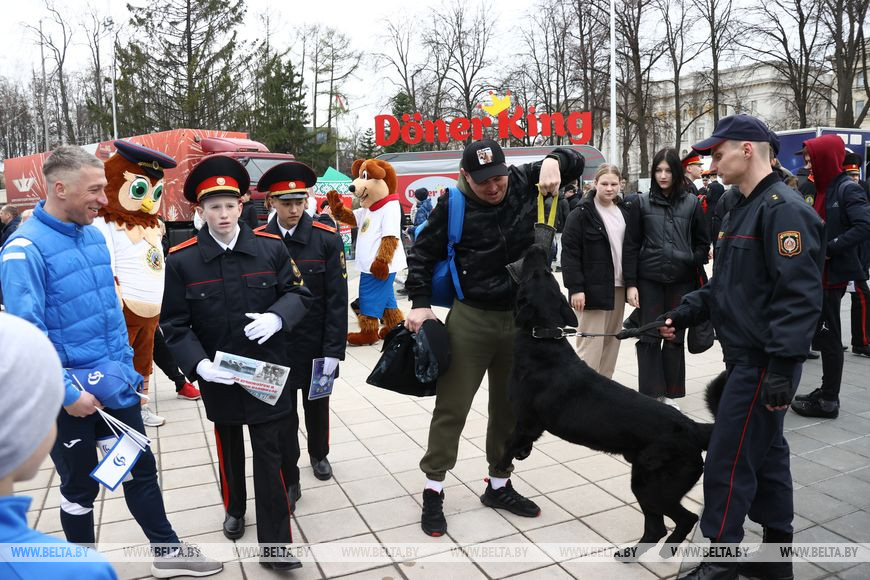 У стадиона "Динамо" еще до церемонии открытия праздника было многолюдно. Кроме воспитанников военно-патриотических клубов и лицеистов МВД на площадках было много обычных минчан, которые решили присоединиться к празднику и просто хорошо провести выходной. А возможностей для приятного и увлекательного времяпрепровождения было действительно немало. Вниманию гостей предлагались выступления кинологов, выставка специальной техники, тир со стрельбой, тематические палатки МЧС и многое другое. Гостей встречали ростовые куклы. Зубры, лисы, львы, зайцы и многие другие персонажи в костюмах представителей силового блока развлекали юных посетителей, которые с удовольствием с ними фотографировались.