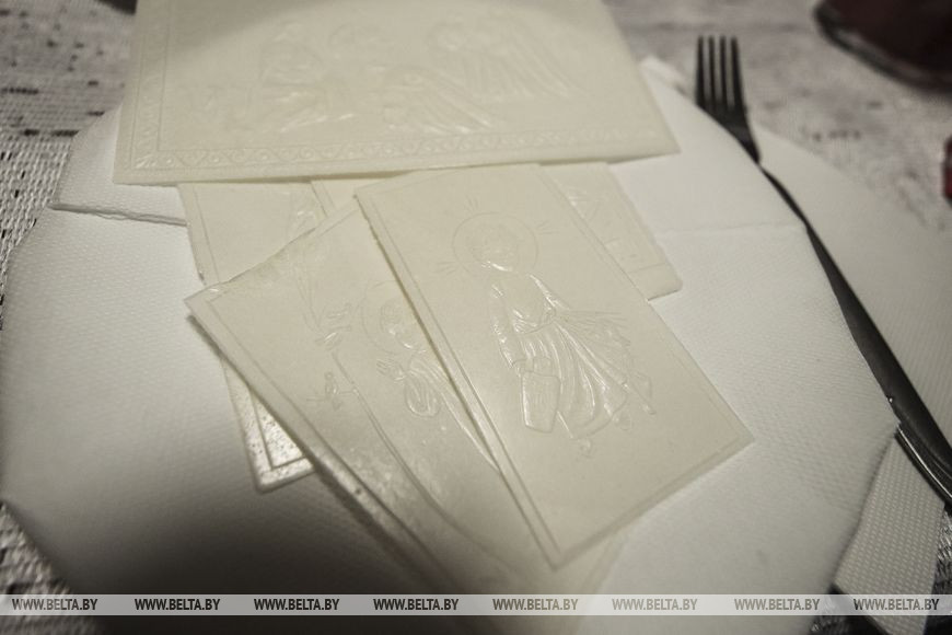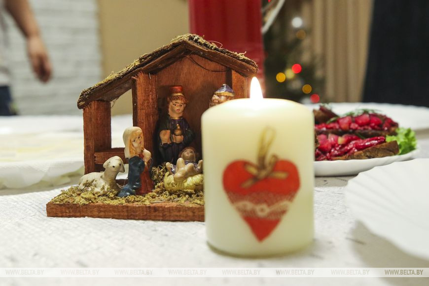 По традиции за стол семья садится с первыми сумерками, когда на небе появляется первая звезда. "Перед этим обязательно читаем Евангелие - фрагмент про рождение Иисуса Христа. Зажигаем свечу как символ Его присутствия среди нас. Еще обязательно под скатерть кладется сено. Это напоминание о том, что Иисус родился в яслях, что он близкий к нам, к каждому человеку - богатому, бедному. За столом оставляем одно пустое место для незваного гостя. Потому что в этот вигилийный вечер никто не должен оставаться один. Если кто-то оказался в такой ситуации, он может пойти к кому-то, и ему там будут рады", - перечисляет традиции Дарья.