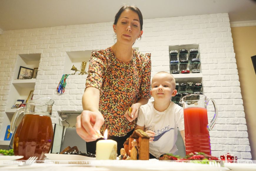 Рождество - удивительный праздник. Он великий и торжественный и в то же время светлый и душевный. Его любят и ждут как взрослые, так и дети. Каждая семья по-своему встречает этот значимый в жизни христиан день. Многодетная семья брестчан Дарьи и Геннадия Назаровых любезно пригласила корреспондентов БЕЛТА на вигилию, во время которой не только рассказала о своих рождественских традициях, но и поделилась оплатками.