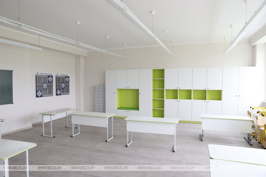 Здесь уже почти не пахнет краской и отделочными материалами - школу ввели в строй еще в мае. Правда, на наведение лоска и придания классам характерных черт предметов, которые будут в них преподаваться, еще потребуется некоторое время. Сейчас и строители, и весь большой коллектив новой школы устанавливают мебель и оборудование, навешивают стенды, жалюзи, выполняют уборку после проведения работ. Как отметила директор школы, в буквальном смысле живут на работе, что совершенно не омрачает настроения - всем хочется поскорее навести порядок в новом, уютном, красивом и очень современном школьном доме.