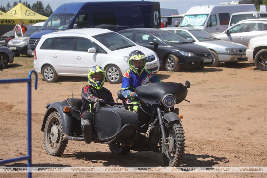 "Мотоцикл остался от деда, надо традиции продолжать. У него мощный мотор и полный привод коляски", - говорит житель Ошмян Анатолий. Его друг добавляет: "Мы вчера свои классы откатали. Не в лидерах, потому что не профессионально занимаемся, а для себя. Зато в удовольствие".