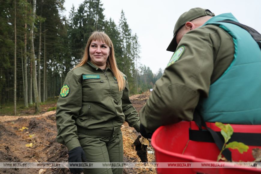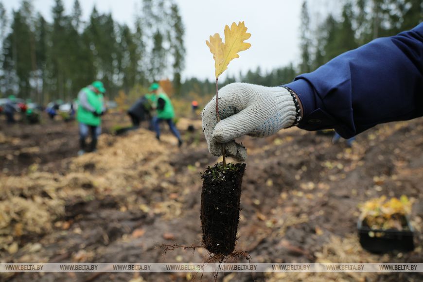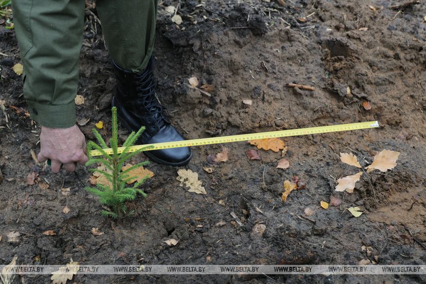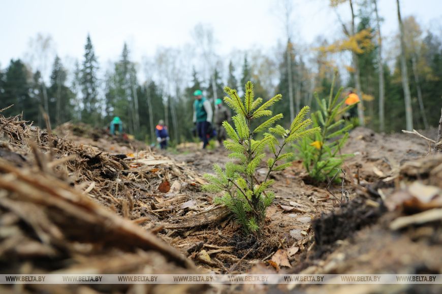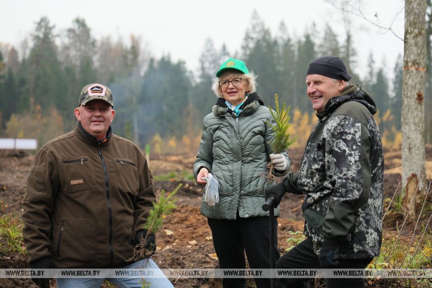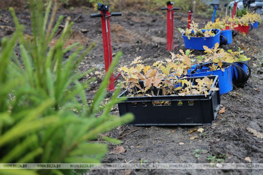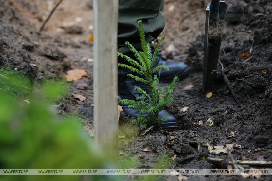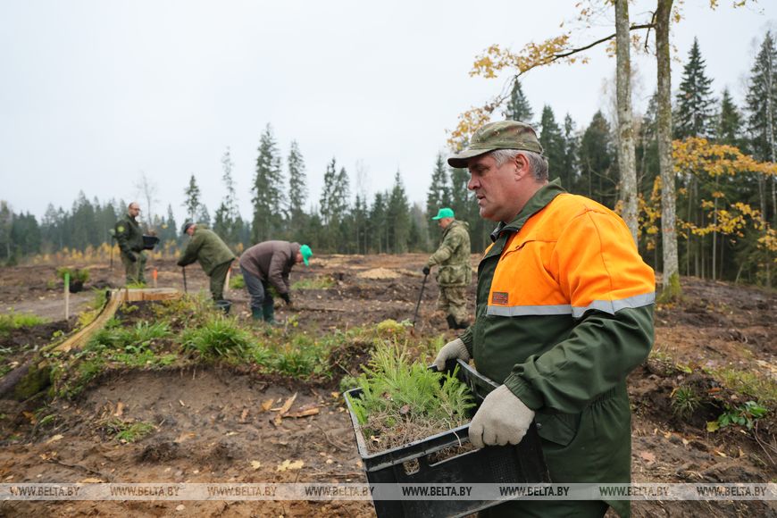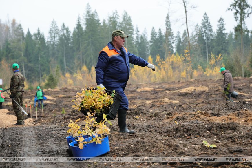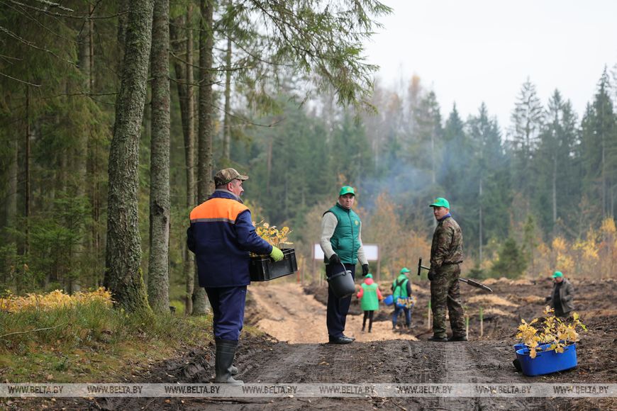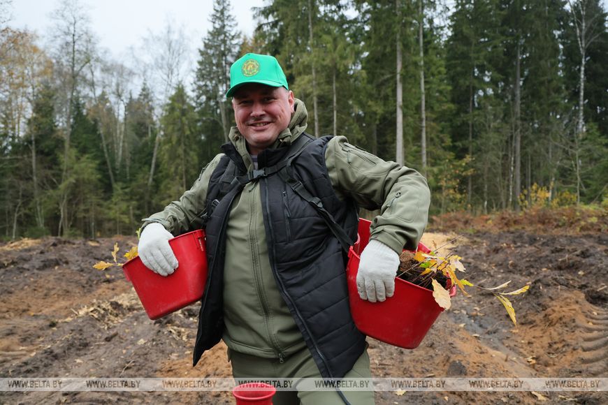 25 октября, Витебский район /Алеся Пушнякова - БЕЛТА/. Молодой смешанный лес из более 4,5 тыс. растений высадили в Витебском районе представители областной власти во главе с председателем облисполкома Александром Субботиным, передает корреспондент БЕЛТА.